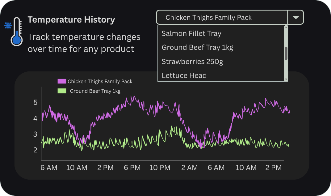 Monitor temperature, freshness, and food safety in real time across your entire cold-chain — from production to delivery — with automated alerts and dynamic shelf-life insights.